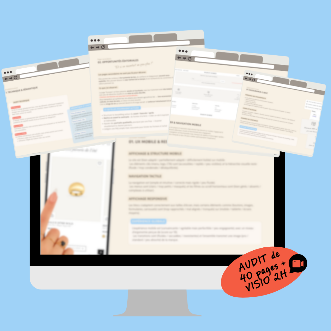 En plus de l’audit complet (40 pages + PDF/Canva animé + vidéo de 30 min), tu bénéficies d'un appel stratégique.
